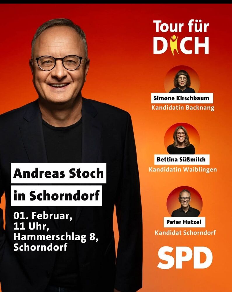 01.02.2026, 11 Uhr Andreas Stoch in Schorndorf mit LTW Kandidatin Bettina Süßmilch, Peter Huzel u. Simone Kirschbaum
