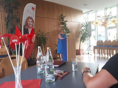 Ein sehr informativer und interessanter Abend mit unserer Bundestagskandidatin, Sybille Mack im Forum Mitte - bei hochsommerlichen Temperaturen und viel Sprudel