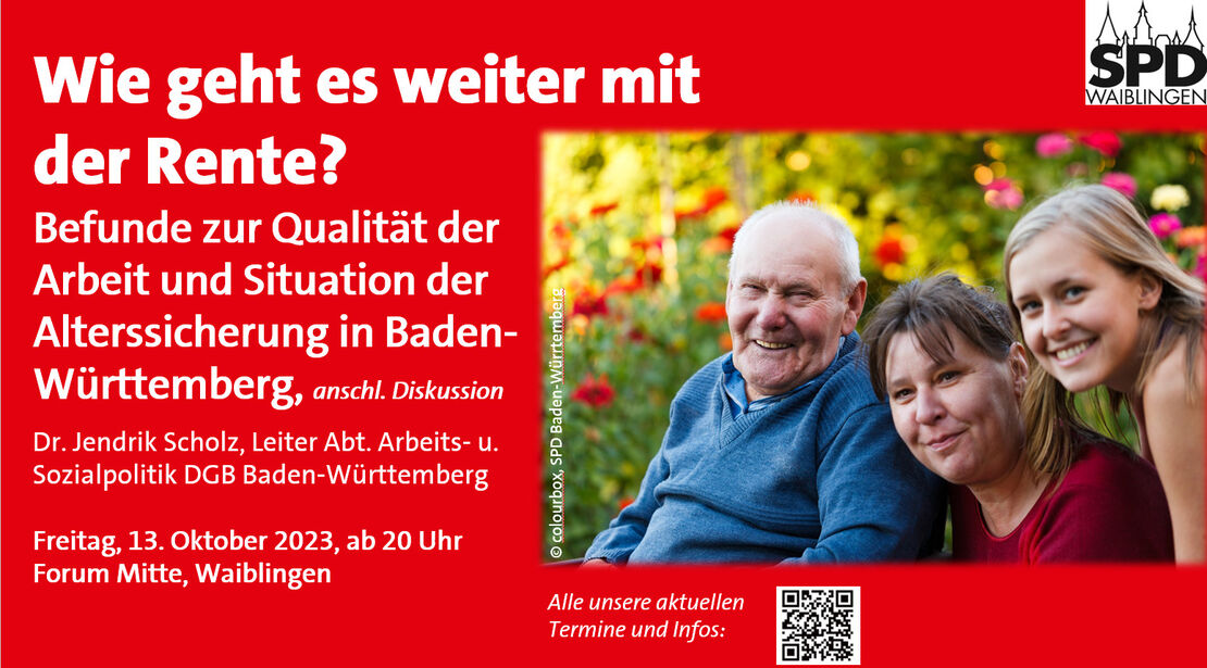 Thema: Wie geht es weiter mit der Rente? Befunde zur Qualität der Arbeit und Situation der Alterssicherung in Baden-Württemberg, anschl. Diskussion.